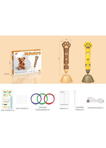 3D ручка AK 0013 працює з пластиком PLA та комплектується 3 кольорами по 3 м. Електронне табло відображає температуру для безпечного використання, а USB-кабель забезпечує зручну зарядку. У наборі 4 кольори філаменту, що дозволяють створювати яскраві та об’ємні вироби. Ручка розвиває творче мислення, просторову уяву та дрібну моторику дитини. Компактна упаковка дозволяє легко і безпечно зберігати та переносити набір.