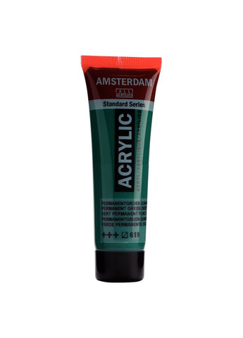 Акрилові фарби Amsterdam мають високий рівень світлостійкості, завдяки використанню натуральних, стійких пігментів. Вони прості у використанні, легко розбавляються водою, сохнуть, практично без запаху, все це дозволяє працювати ними в домашніх умовах. Завдяки особливому зв'язуючому, фарби прекрасно підходять для виконання робіт не тільки на полотні, а й на стінах, дереві, пластику, металі. Палітра: 102 кольори, в тубах 20, 75, 120 і 250 мл та в банках 500 мл. В асортименті 13 металіків, 6 перламутрових та 4 дзеркальних (флуорисцентних) кольорів. Виробник: Royal Talens, Нідерланди Акрилові фарби Amsterdam виробляє відома компанія Royal Talens з Нідерландів, історія якої налічує вже понад 100 років. Акрилові фарби можна використовувати для будь-яких поверхонь - паперу, картону, полотна, дерева, скла, пластику і т.д. Саме тому даний матеріал використовують не тільки художники, але й декоратори, та й просто ті, хто захоплюється рукоділлям. Фарби Amsterdam наділені хорошою структурою і світлостійкістю, хорошо лягають на поверхню, їх легко змішувати для досягнення нових відтінків. Дуже висихають, після чого легко переносять вплив води: поверхню, покриту акрилом можна навіть мити під прохолодною водою. Високий ступінь покривності дозволяє наносити фарби Амстердам шар за шаром - це підвищило їх популярність серед художників. При цьому вони не мають вираженого запаху, упаковані в зручні туби, що створює ідеальні умови для використання вдома або в навчальних класах. До складу фарби входить 100-відсоткова акрилова смола (в ролі сполучного елемента), тому, після висихання, фарба утворює міцну плівку, що не вимагає навіть додаткового покриття лаком. Багата палітра і висока якість - все це робить для багатьох улюбленим матеріалом саме фарби Amsterdam.