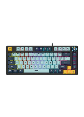Ігрова клавіатура Fantech ATOM81 MK875V2 MIZU Blue Switch призначена для тих, хто хоче поєднати зручність компактного формату і повний ігровий функціонал. Його чуйні перемикачі, ергономічна розкладка клавіатури та драматичне підсвічування дозволяють зосередитися на грі та підтримувати високий рівень контролю за допомогою занурення. Особливості та переваги клавіатури Fantech ATOM81 MK875V2 MIZU Blue Switch: • Оригінальний дизайн з 3-колірними патронами та 17-режимним RGB-підсвічуванням, що забезпечує справді захоплююче занурення. • Компактні розміри (327×135×35мм) з тонкою рамкою по периметру і оптимальним набором клавіш (81 кнопка). • Міцний ABS пластиковий корпус з протиковзкими накладками та подвійними відкидними кріпленнями на нижній панелі. • Виготовлені подвійним литтям під тиском, які гарантують чітку видимість і довговічність їх символів. • Надійні 3-контактні механічні перемикачі Синій Перемикач з чіткою тактильною реакцією та характерним клацанням. • Можливість гарячого перемикання, що дозволяє експериментувати з їх різними типами без складних дій. • Технологія Anti-ghosting на 26 клавіш, що забезпечує точну реєстрацію одночасних натискань, уникаючи помилок при швидкому вході. • Світлодіодні індикатори для контролю роботи та диммер з кільцевим підсвічуванням для легкого регулювання об'єму та освітлення. • Роз'єм Type-C для підключення до сумісних пристроїв з кабельним вузлом 1, 5 м. • Він додатково оснащений двома запасними вимикачами, вимикачем для них і вимикачем для шаф. Клавіатура Fantech ATOM81 MK875V2 MIZU поєднує в собі стиль, ергономіку та надійність, щоб забезпечити впевнений контроль у будь-якій ігровій ситуації.