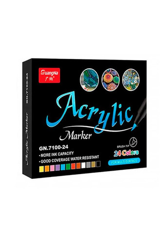 Набір акрилових маркерів для малювання Guangna GN7100 Набір акрилових маркерів Guangna — це незамінний інструмент для творчості та професії, який дає змогу вам висловити свою уяву на різних поверхнях. Безмежні можливості в творчості з набором акрилових маркерів Guangna Особливості: Матеріали для роботи, як-от: скло, тканина, метал, кераміка та багато інших. Завдяки різноманітній колірній гамі та високоякісному складу ці маркери гарантують чудовий результат і надійність у будь-якій вашій творчій справі. Чорнило на акриловій основі забезпечує стійкість і насиченість кольору, що дає змогу створювати виразні та деталізовані малюнки без ризику вицвітання або розмазування. Тип наконечника — пензель (brush) — дає змогу контролювати товщину та ширину ліній, що робить ці маркери ідеальними для роботи як із найдрібнішими деталями, так і з великими поверхнями. Завдяки універсальному призначенню ці маркери дають вам змогу творити на різних матеріалах, що розширює ваші можливості та дає вам відчуття творчої свободи. Від оформлення скла та кераміки до розмальовування тканини та металевих поверхонь ви можете застосовувати ці маркери в будь-яких проєктах, що робить їх універсальним інструментом для художників, ремісників і всіх, хто цінує творчість і індивідуальність. Набір акрилових маркерів Guangna допоможе вам відкрити безмежні можливості у творчості, де кожен ваш проєкт стане вираженням вашої унікальності та креативності.