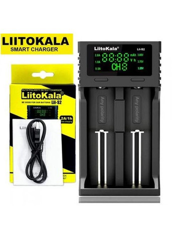 Зарядное LiitoKala Lii-S2 — універсальний зарядний пристрій з інформаційним дисплеєм і регульованим струмом заряду. Сумісна з багатьма циліндричними акумуляторами й автоматично розпізнає літій-іонні (Li-ion), нікель-металгідридні (Ni-Mh) і нікель-кадмієві акумулятори (Ni-Cd). Зарядний пристрій LiitoKala Lii-S2 також заряджає літій-фосфатні (LiFePO4) акумулятори та Li-ion акумулятори з кінцевою напругою 4,35V попередньо встановивши відповідні параметри в ручному режимі. Характеристики зарядного пристрою LiitoKala Lii-S2: Кількість слотів для акумуляторів: 2 незалежні канали з рухомим контактом "мінус". Можна заряджати одночасно акумулятори різних типів, розмірів і ємності, кожен акумулятор заряджається незалежно від усіх інших. Визначення ємності. Зарядне LiitoKala Lii-S2 визначає ємність акумулятора за зарядом. Сумісно з такими типами батарей: - Ni-MH / Ni-Cd: A, АА, ААА, ААAA, C(R14), SC; - Li-ion 4.2V/4.35V (зокрема ICR/IMR/INR)/LiFePO4/: від 10440 до 26650, зокрема 18650, 14500, 16340, 20700, 21700; - підходить для акумуляторів 18650 із захистом; - підходить для акумуляторів 20700/21700; — підходить для акумуляторів розміру C (R14). Струм заряду: 0,5A/1A/2А - Ni-Mh/Ni-Cd: 500mA*2; - Li-Ion: 500mA*2 / 1000mA*2 / 2000mA*1; - LiFePO4: 500mA*2 / 1000mA*2 / 2000mA*1. Автоматичне визначення повного заряду акумуляторів: - Ni-Mh/Ni-Cd: 1.48V ± 1%; - Li-Ion: 4.2V/4.35V ± 1%; - LiFePO4: 3.65V ± 1%. Інформаційний дисплей із підсвіткою, на який виводиться поточна напруга акумулятора, струм заряду, тип акумулятора, накопичена ємність у поточний момент. Автоматичне визначення полярності — акумулятори можна вставляти в слот будь-яким боком. Активація сильно розряджених Li-ion акумуляторів. Живлення зарядного пристрою: будь-яке USB-джерело живлення DC 5V/2A (до комплекту не входить). Комплект постачання: Зарядний пристрій LiitoKala Lii-S2. Кабель USB-micro USB. Упаковка. Інструкція англійською мовою.