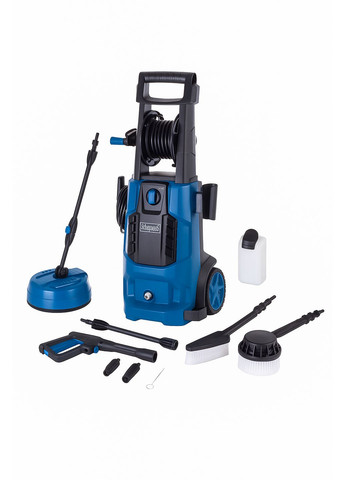 Опис мийки високого тиску Кентавр МВТ-170мк Електрична побутова мийка високого тиску Кентавр МВТ-170мк – це прекрасний помічник в господарстві, гаражі, невеликому СТО. Вона ідеально підходить для ефективного очищення за допомогою сконфігурованого струменя води (чистої або з миючими засобами) майже всіх поверхонь, а саме: ✔ будівельної, сільськогосподарської та садово-паркової техніки, автомобілів, мотоциклів, катерів, фургонів, тракторів, мотоблоків, газонокосарок; ✔ тротуарів і майданчиків з твердим покриттям з асфальту, бруківки, алейної та керамічної плитки та інших матеріалів, що не розмиваються водою; ✔ фасадів будівель і споруд з металу, каменю, цегли, дерева, скла, полімерних матеріалів; ✔ міцних виробів з металу, дерева, каменю, пластмаси, скла, в тому числі посуду, решіток гриль і мангалів, садових меблів, паркових скульптур тощо; ✔ садових, паркових дерев і чагарників; ✔ інших водостійких предметів і виробів тощо В основі конструкції мийки Кентавр МВТ-170мк - зібраний в одному блоці електродвигун і водяний насос високого тиску. До нього за допомогою спеціального шлангу підключений пістолет високого тиску з форсункою – для формування водяного струменя. Насос поміщений у пластмасовий корпус, що має ручку, кріплення для пістолета високого тиску, шлангу та кабелю, а також перемикач режимів роботи. Мийка підключається до побутової електричної мережі змінного струму з напругою у 220 В і частотою 50 Гц. Запорука високої електробезпеки - подвійна ізоляція струмопровідних частин! Дуже важливо! На мийці встановлений самовсмоктувальний насос – це функція дозволяє підключати її до водопроводу або до різних ємностей без збиткового тиску. Серед переваг Кентавр МВТ-170мк: ✔ насос, що виготовлений з алюмінієвого сплаву – це гарантує його підвищену надійність і ремонтопридатність; ✔ функція самовсмоктування для роботи мийки з резервуарів та ємностей; ✔ якісний шланг високого тиску – 5 м. В комплектацію Кентавр МВТ-170мк входить: пістолет високого тиску, подовжувач з розпиленням, шланг (5 м),фільтр-перехідник для підключення вхідного шлангу, голка для прочищення форсунок.