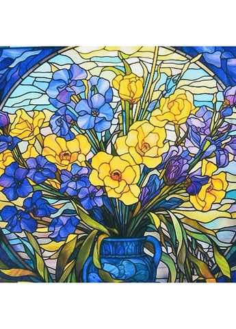Алмазна мозаїка Strateg ПРЕМІУМ Вітражні квіти розміром 30х30 см не повна викладка (DEEX16280)