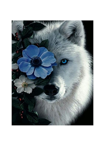 Алмазна мозаїка Strateg ПРЕМІУМ Білий вовк у квітках без підрамника розміром 40х50 см (JSFH85892)