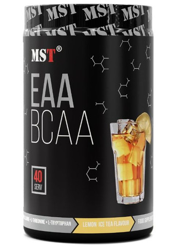 MST® BCAA&EAA Zero – це комплекс, що складається з 8 незамінних амінокислот, доповнений вітамінами групи В. Ці речовини представляють високу цінність для організму людини, оскільки вони не можуть самостійно синтезуватися в нашому тілі, а значить повинні надходити ззовні з їжею або ж при допомозі спеціальних дієтичних доповнень. ОСОБЛИВОСТІ MST® BCAA&EAA Zero: • 7,61 г амінокислот на порцію (ізолейцин, лейцин, валін, лізин, метіонін, треонін, триптофан та фенілаланін), • Забезпечують організм високоякісним білком і сприяють стрімкому фізичному прогресу, • Надійно захищають м’язи від катаболізму під час стресів та тренувань, за рахунок повного комплексу амінокислот, • До складу входять посилені L-форми амінокислот, що відіграють першорядну роль у запобіганні катаболізму та прискоренні відновлення спортсмена після навантажень, • Забезпечують якісне нарощування м’язової маси без набору жирових відкладень та затримки води, • Містять незамінні амінокислоти в оптимальній пропорції, встановленій Всесвітньою організацією охорони здоров’я, • Найвища якість сировини (європейська сировина) та змішуваність (розмішуються без додаткових зусиль), висока біодоступність (за рахунок додавання вітамінів групи B), • Мають натуральний смак і не містять барвників, • Можна приймати навіть під час дієти, тому що продукт не містить додаткового цукру, у складі на порцію менше 0,5 г цукру, • Є чудовим доповненням до раціону людей, які ведуть активний спосіб життя. MST® BCAA&EAA Zero РЕКОМЕНДУЄТЬСЯ ДЛЯ: • Підтримки активного синтезу м’язового білка; • Прискорення зростання сухої м’язової маси; • Підтримки позитивного балансу азоту в організмі; • Придушення м’язового катаболізму, що особливо важливо під час тренування та відразу після його закінчення; • Прискорення процесів відновлення за умов регулярних високо інтенсивних фізичних навантажень; • Збільшення тренувальної працездатності, фізичної сили та витривалості; • Підвищення загального енергетичного потенціалу. Застосування Змішайте 1 порцію (13г = 2 мірні ложки) з 250 мл холодної води. Споживайте 1-2 порції в день, 1 порцію між прийомами їжі і 1 порцію перед сном. У дні тренувань: 1 порцію до, під час або після тренування.