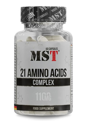 MST® 21 Amino Acids 1100 mg — це потужна добавка, яка містить повний комплекс із 21 амінокислоти в кожній капсулі. Амінокислоти відіграють ключову роль у підтримці здоров’я м’язів, їх росту та відновлення після тренувань. Завдяки збалансованому складу незамінних та замінних амінокислот, цей продукт підходить для тих, хто хоче купити амінокислоти для досягнення максимальних спортивних результатів. Що таке MST® 21 Amino Acids 1100 mg? MST® 21 Amino Acids містить повний спектр амінокислот: Незамінні амінокислоти (EAA): Ці амінокислоти необхідно отримувати з їжею або добавками, оскільки організм їх не виробляє самостійно. До них входять BCAA (лейцин, ізолейцин, валін), а також лізин, треонін, метіонін, фенілаланін і триптофан. Замінні амінокислоти: Ці амінокислоти можуть синтезуватися в організмі, але їх додатковий прийом допомагає прискорити відновлення та підтримувати м’язову масу. Прикладом є глутамінова кислота, пролін і аргінін. Умовно незамінні амінокислоти: Такі амінокислоти, як глутамін, тирозин і цистеїн, необхідні в умовах стресу або інтенсивних фізичних навантажень. Переваги MST® 21 Amino Acids 1100 mg: Комплексна підтримка м’язів: Завдяки вмісту як незамінних амінокислот, так і BCAA, MST® 21 Amino Acids сприяє синтезу білка в м’язах. Це допомагає прискорити ріст м’язової маси та покращити витривалість. Для тих, хто активно займається спортом, комплексні амінокислоти незамінні для досягнення спортивних цілей. Прискорене відновлення: Амінокислоти відіграють ключову роль у відновленні м’язів після інтенсивних тренувань. Купити амінокислоти для відновлення — це вірне рішення для тих, хто хоче зменшити біль у м’язах після тренувань і швидше повернутися до фізичної активності. Збільшення фізичної витривалості: Регулярний прийом комплексних амінокислот покращує енергетичний обмін і допомагає організму справлятися з підвищеними фізичними навантаженнями. Амінокислоти підтримують роботу м’язів і сприяють підвищенню витривалості під час тренувань. Підтримка імунної системи: Амінокислоти, такі як глутамін і аргінін, допомагають зміцнити імунну систему, що особливо важливо для спортсменів та людей з активним способом життя. Під час інтенсивних навантажень потреба в цих амінокислотах зростає, і їх прийом допомагає підтримувати здоров’я та імунітет. Зручність у використанні: Кожна капсула MST® 21 Amino Acids містить 1100 мг амінокислот, що забезпечує простоту в застосуванні. Вам не потрібно змішувати порошки або шукати різні добавки — комплекс амінокислот в одній капсулі вирішує одразу кілька завдань щодо підтримки вашого здоров’я та фізичних показників. Як працюють амінокислоти в MST® 21 Amino Acids? Амінокислоти є основними будівельними блоками білків і м’язової тканини. Коли ви тренуєтеся, м’язи руйнуються і потребують відновлення — тут важлива роль амінокислот. Комплекс амінокислот MST® 21 Amino Acids допомагає організму швидко відновити м’язову тканину, прискорюючи регенерацію та підтримуючи м’язовий тонус. Кому підходить MST® 21 Amino Acids 1100 mg? Спортсменам і фітнес-ентузіастам: Для тих, хто активно тренується і хоче збільшити м’язову масу, покращити витривалість і швидше відновлюватися. Людям з активним способом життя: Амінокислоти допомагають справлятися з фізичними навантаженнями і підтримувати загальний тонус організму. Тим, хто хоче підтримувати здоров’я м’язів: Якщо 