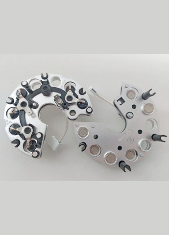 ВАЗ Калина 1117-19 Номінальна постійна напруга,Uпост., 14 Максимальний постійний струм, Івпб.max, А 120 Пряма напруга (амплітудне значення) на кожному діоді при t=(25±10)°C і Іпр=110А, не більше, В 1,35 Імпульсна напруга обмеження на кожному діоді (при Іогр.=45А , t=(25±10)°C), не більше, 28 Пробивна напруга на кожному діоді (при Іобр= 5 мА) 20-26 Живляча мережа: число фаз- 3 частота, Гц, не більше 32000 Спосіб приєднання обмоток статора затискач У випрямному блоці БВО8-120-02 (на відміну від блоку БВО8-105-02) застосовуються діоди з поліпшеними електрофізичними параметрами, що забезпечують надійну роботу блоку при більш високих значеннях струму генератора.