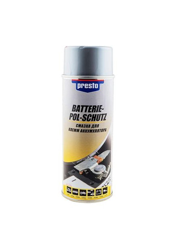 Назва товару: Мастило для клем акумулятора Presto 400 мл (арт. 157059) Опис товару: Мастило для клем акумулятора Presto забезпечує надійний захист полюсів батареї, кріплень, контактів та кабелю заземлення від корозії та окислення. Воно запобігає виникненню ковзаючих розрядів і втраті потужності, тим самим продовжуючи термін служби акумулятора. Робочий температурний діапазон мастила становить від -30°C до +130°C. Переваги: Ефективний захист: Запобігає корозії та окисленню клем акумулятора, забезпечуючи стабільну роботу електричних систем. Покращена провідність: Зменшує контактний опір та запобігає утворенню струму витоку. Стійкість до температур: Зберігає свої властивості в широкому діапазоні температур від -30°C до +130°C. Сумісність: Безпечне для використання з пластиками та іншими матеріалами. Інструкція з використання: Підготовка поверхні: Очистіть та висушіть клеми акумулятора перед нанесенням мастила. Рекомендується використовувати універсальний очисник Presto для досягнення найкращих результатів. Нанесення: Рівномірно розпиліть мастило на клеми та контакти з відстані приблизно 15-20 см. Сушка: Дайте мастилу висохнути протягом декількох хвилин перед підключенням акумулятора. Технічні характеристики: Об'єм: 400 мл Форма випуску: Аерозоль Колір: Блакитний Температурний діапазон застосування: від -30°C до +130°C Виробник: Presto Країна виробництва: Нідерланди