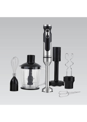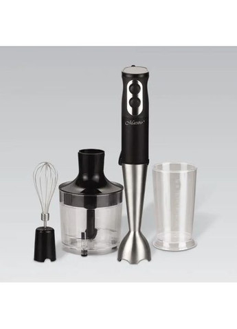 Блендерний набір з насадками Maestro (MR-567) Потужність: 220-240 В, ~50 Гц, 1000 Вт Кількість швидкостей: 2 Імпульсний режим роботи Ножі з нержавіючої сталі Насадка для картоплі Чопер із подвійним лезом Функція «міксер» з двома типами насадок Віночок Ергономічний дизайн ІНСТРУКЦІЯ Багатофункціональний блендер Maestro MR 567 потужністю 1000 Вт працює у двох швидкісних режимах, постачається в комплекті з вінчиком для збивання, насадки для картоплі та замішування тіста, а також чашею для подрібнення і мірним стаканчиком, має чорний пластиковий корпус і ножі з нержавіючої сталі. Блендер призначений для подрібнення їжі, приготування емульсій, пюре, збивання напоїв, мусів тощо, а також для колення льоду. Блендерний набір Maestro (MR-567) має потужність 1000 Вт, що забезпечує високу продуктивність під час змішування та подрібнення. Він пропонує два швидкісні режими й імпульсний режим для гнучкості в приготуванні. Ножі з нержавіючої сталі гарантують надійне подрібнення. До комплекту входять насадка для картоплі, чопер із подвійним лезом, функція «міксер» з двома типами насадок і віночок, що розширює можливості пристрою та робить його універсальним помічником на кухні. Блендерний набір Maestro (MR-567) — це потужний та універсальний пристрій, який перетворює кожне приготування на справжнє задоволення. Його 1000-ватний мотор і два швидкісні режими, поряд з імпульсним режимом, забезпечують чудові результати під час змішування та подрібнення. Елегантні ножі з нержавіючої сталі легко справляються з будь-якими інгредієнтами. До комплекту також входять насадка для картоплі, чопер із подвійним лезом, функція «міксер» з двома типами насадок і віночок, що робить цей блендер справжнім майстром усіх кулінарних завдань.