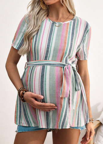 Блуза SHEIN для вагітних із дрібним квітковим принтом. Ця блуза з квадратним вирізом та об'ємними рукавами. Розкльошений поділ та баска. Блуза доповнена оборкою та складаннями. Візерунок виконаний в стилі бохо, в смужку і з принтом по всій поверхні. Довгі рукави та класичний крій. Блуза не розтягується. Можна прати у пральній машині або піддавати професійній хімчистці.