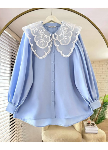 Тренд осень 2025 року Сорочка у францезькому стині потовженого крою декорована відкладним комірцем з витонченого мережива Напіобхват грудей С 54 см М 55 см Л 57 см ХЛ 59 см Замір по виробу. Сорочка має мати комфортний запас та сидіти вільно Склад тканини: 70% бавовна 20% поліестер