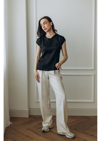 Жіночий корсет чорного кольору виготовлений із м’якої тканини з вмістом шовку та віскози. Матеріал має делікатний блиск і гладку текстуру, приємну на дотик. Модель з чітко сформованим силуетом: щільно прилягає до тіла, підкреслюючи лінію талії та грудей. Застібка — шнурівка, розташована ззаду, дає змогу регулювати посадку та щільність прилягання. Передня частина гладка, з виточками по фігурі. Верхній край злегка заокруглений, лінія низу прямолінійна. Корсет підходить як для носіння самостійно, так і в складі багатошарових образів.