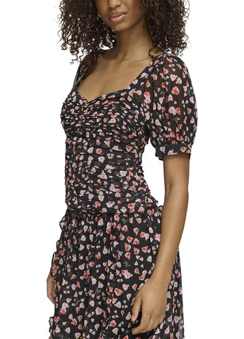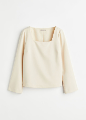 Блуза з бавовняної тканини. Квадратна горловина. Дизайн має V-подібну відкриту спину та шнурівку з тонким шнуром. Потайна блискавка знизу. Рукави крою реглан довжиною три чверті з тонкою гумкою з внутрішньої сторони плечей і манжетів. Поділ фестончастий і має вишивку. Без підкладки. Довжина рукава: Довжина: 58,0 см (розмір M), спинка: Довжина: 55,2 см (розмір M).