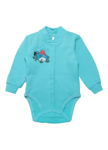 Боді "Друзі" - це знахідка для молодих мам та їх малюків, тому що боді комфортний, тепленький і приємний до тіла. Виріб розстібний по всій довжині за рахунок кнопочок. На рукавах та по вирізу горловини еластична манжета. Виріз пройм ніжок оброблений бейкою в колір виробу, лише в ментоловому кольорі бейка виразна темно-синя. Окрасою напівкомбінезону є кумедна диво-риба в кумедній в'язаній шапочці.