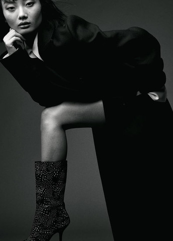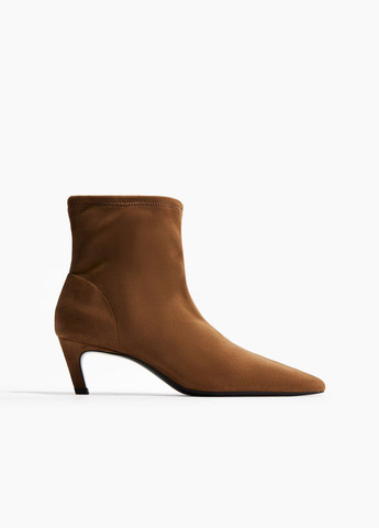Високі, загострені ботильйони з еластичним халявою та переднім швом. Закриті п'яти і блискавка збоку.
