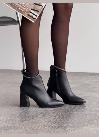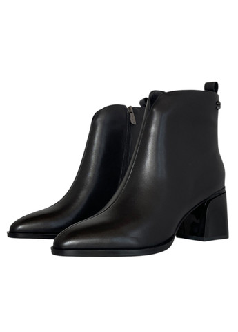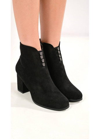 Жіночі чорні демісезонні ботильйони - елегантне взуття, що поєднує стиль і комфорт. Верх виконаний зі штучної замші, яка надає виробу м'якості та розкішного вигляду. Стійкий підбор 7 см додає взуттю вишуканості.