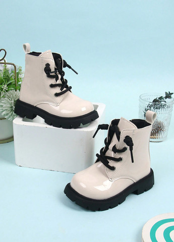 Черевики – дизайн до середини гомілки. Ці черевики мають подвійну блискавку та шнурівку. Вони мають мигдалеподібну шкарпетку і плоску підошву. Товста плюшева підкладка забезпечує комфорт. Неслизька гумова підошва забезпечує зчеплення. Підходять для різних випадків, включаючи носіння у приміщенні та на вулиці.