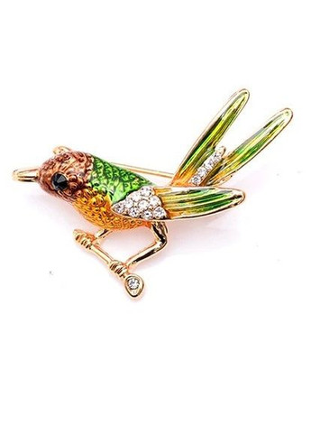 Модного дизайну брошка птах - красива прикраса образу. брошка - 4х3 см, застібка - 2 см Склад: ювелірний сплав, золотисте напилення, ювелірна емаль, стрази