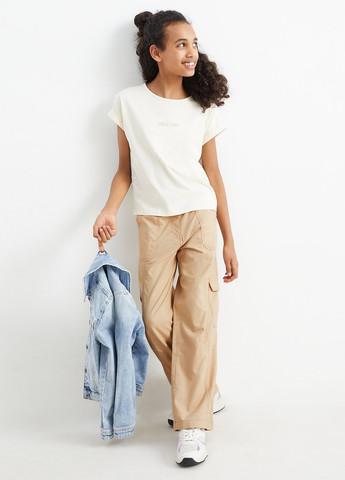 Колір Бежевий / Матеріал Бавовна, Плащівка / Фасон Кльош, Карго, Палаццо / Висота посадки Середня талія / Візерунок Однотонний