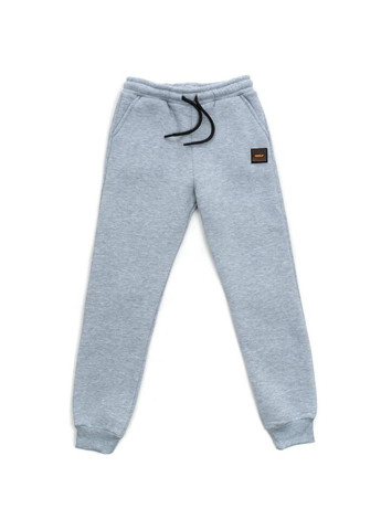 Зручні, теплі спортивні штани на манжетах, приємного світло-сірого кольору із стильною перфорованою нашивкою для вашого модника.