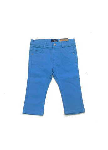 Дитячі штани на регульованою гумці, застібаються на гудзик, з кишенями. Декоровані гудзиками, кишенями-обманками на ґудзиках ззаду і нашивних шкіряної емблемою бренду. У комплекті підтяжки.