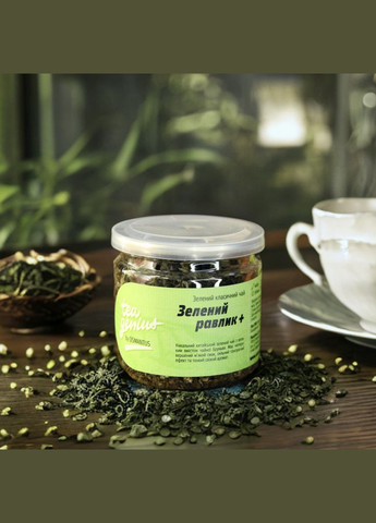 Унікальний китайський зелений чай "Зелений равлик +" з підвищеним вмістом чайної бруньки. Має неперевершений м'який смак, сильний тонізуючий ефект, тонкий свіжий аромат.
