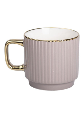 Керамічна чашка об'ємом 300 мл вирізняється мінімалістичним дизайном із рельєфною поверхнею, що надає їй стильного та сучасного вигляду. Завдяки компактним розмірам вона зручна для повсякденного використання, а глянсове покриття забезпечує легкість у догляді. Золотий ободок і ручка додають виробу елегантності, роблячи його гармонійним доповненням до різних стилів сервірування. При цьому чашка залишається практичною і зручною у використанні. Важливо враховувати, що її не можна нагрівати в мікрохвильовій печі. Міцна кераміка і продумана форма гарантують комфортне утримання в руках. Завдяки рельєфній текстурі чашка не тільки має привабливий вигляд, а й приємна на дотик. Характеристики: Матеріал: кераміка Об'єм: 300 мл Висота: 8 см Верхній діаметр: 8.5 см Нижній діаметр: 7 см Покриття: глянцеве Особливості: рельєфна поверхня, золота ручка, золотий обідок, золотий обідок Не підходить для використання в мікрохвильовій печі
