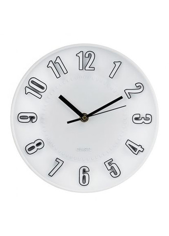 Діаметр - 20 см, товщина - 4 см. Настінний годинник діаметром 20 см з оригінальними великими цифрами і мінімалістичним дизайном. Завдяки контрастним стрілкам час легко зчитується навіть здалеку. Ідеально підходить для сучасних інтер’єрів, офісів та дитячих кімнат.