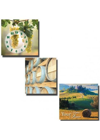 Годинник настінний на полотні 3х секційні Сонячна Тоскана розмір секції 30х30см. Полотно - бавовна, дерев'яний каркас. На задній панелі розташований стандартний часовий механізм (із зовнішнім діаметром 20см) розрахований на 1 батарейку АА. Годинник упакований в індивідуальну коробку.