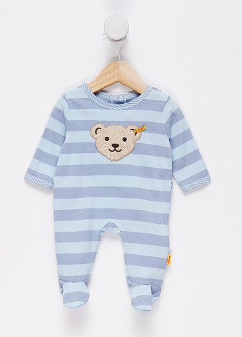 Steiff- це легендарний німецький бренд, заснований у 1880 році. Головний девіз компаніі- "Для дітей лише найкраще", бренд використовує: якісний текстиль, ніжні тканини, зручний крій, безпечну фурнітуру, стильний дизайн. Одяг високоі якості дарує малюкам тепло, комфорт та безпеку. Комбінезон- чоловічок для хлопчика з м'якого бавовняного матеріалу, блакитного кольору у широкого смужку. Довгі рукави та закриті ніжки, зручні кнопки ззаду та знизу для легкого переодягання, об'ємний принт ведмедика. Розмір 50 - 0- 1 місяців.