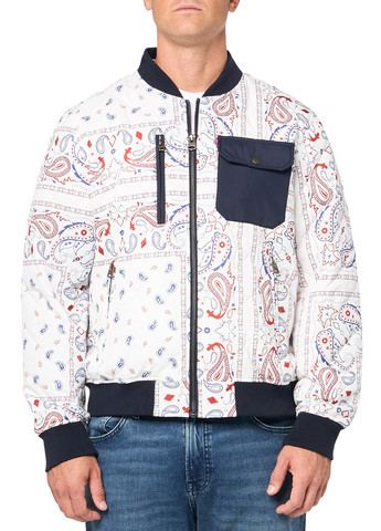 Чоловіча куртка-бомбер Levi´s. Оновлена сучасна куртка-бомбер із принтом. Куртка застібається на блискавку. Еластичні манжети та поділ у рубчик. Дві нагрудні кишені: одна на блискавці, а друга з клапаном на кнопці. Дві бічні кишені блискавки. Одна внутрішня кишеня. Бомбер по всій поверхні із принтом пейслі. Відмінна якість.