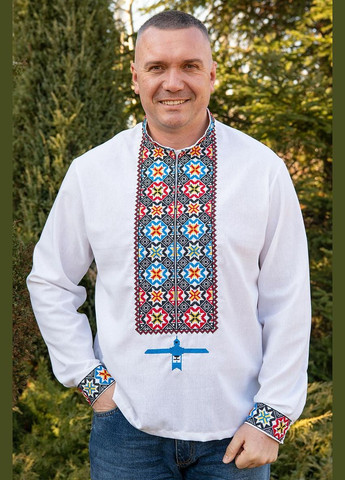 Розміри: M, L, XL, 2XL, 3XL, 4XL, 5XL. Тканина: 55% льон, 45% віскоза. Вишивка машинна, гладдю. Виробник: Україна. Таблиця розмірів у фотографіях. Ця чоловіча вишиванка — елегантне поєднання стриманості й традиційної української вишивки. Вона виконана в глибокому сірому кольорі з контрастною червоно-білою геометричною вишивкою на комірі-стійці, планці та манжетах, що підкреслює характер та національний акцент. Матеріал — 55 % льон і 45 % віскоза — створений для комфорту: льон добре «дихає» та забезпечує прохолоду в спеку, віскоза додає м’якості, покращує драпірування та полегшує догляд. Класичний, прямий крій із стоячим коміром і зручною застібкою на горловині дозволяє носити цю вишиванку як на урочистих подіях, так і в повсякденному образі. Переваги виробу: Стриманий сірий колір — універсальний вибір, який легко поєднується з різними стилями. Чітка червоно-біла вишивка на комірі, планці та манжетах — декоративний акцент із характером. Натуральний льон у поєднанні з віскозою — матеріал, що охолоджує, приємний до тіла і має ділову фактуру. Прямий крій і комір-стійка — зручність носіння та класика в будь-якому заході. Дизайн, який поєднує українські традиції і сучасну естетику — вибір для справжнього стилю.