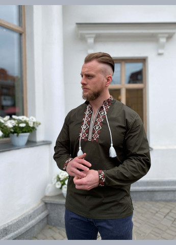 Стильна вишиванка чоловіча - сучасна вишита сорочка (Колір - Хакі)