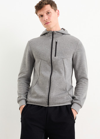 Толстовка на блискавці з м'якої тканини з капюшоном, розділеною кишенею та оздобленням у рубчик. З начосом. Довжина рукава 69 см у розмірі 3XL. Довжина спинки 81 см у розмірі 3XL.