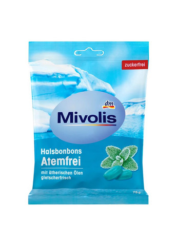 Цукерки для полегшення дихання з м'ятою, 75 г Mivolis Цукерки для полегшення дихання від Mivolis Містять ментол і натуральну м'ятну олію Мають освіжаючий смак і забезпечують тривалий свіжий подих Допомагають створити приємне відчуття вільного дихання Без цукру, глютену і лактози, веганські Цукерки Mivolis для полегшення дихання з м'ятою та ментолом мають освіжаючий смак і забезпечують тривалий свіжий подих. Допомагають створити відчуття вільного дихання. Освіжіть довгу подорож цукерками Mivolis! Властивості: Властивості продукту: без лактози Основний колір: синій Ефект: тривалий Текстура / Консистенція / Застосування: капсули/таблетки Важливі примітки: Дотримуйтесь збалансованого та різноманітного харчування та здорового способу життя. Надмірне вживання може мати проносний ефект. Склад: Підсолоджувачі: ізомальт, мальтоitol сироп, сорбітол сироп, глікозиди стевіолу зі стевії; ментол, ефірна олія м'яти польової, ефірна олія м'яти перцевої, екстракти спіруліни та фарбувального жовтого, барвник: патентований синій V.