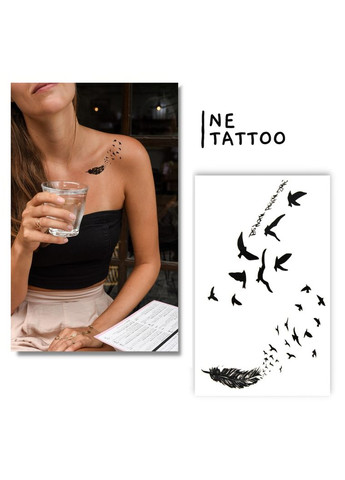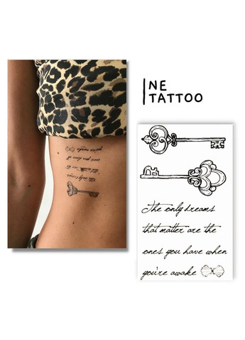 Тимчасові тату — це різноманітні Малюнки, які наносяться на тіло за лічені хвилини та тримаються до 7 днів. Перевага таких татуювань Можна наносити на будь-які частини тіла: ноги, руки, шию, спину, волосся, зону декольте або бікіні. Вологостійкі та стійкі до ультрафіолетовим випромінюванням. Абсолютно безпечно для здоров'я (відповідають стандартам косметичної продукції та є гіпоалергенними). Прекрасна альтернатива повноцінному татуюванню. Легко експериментувати з малюнками та образами. Високоякісні зображення. Чіткі лінії, яскраві кольори. Легко та швидко створити новий образ на вечірку або фотосесію. Чудовий варіант для різноманітних конкурсів і корпоративних вечірок. Великий вибір різноманітних . Перевагою таких малюнків є їхня універсальність. Ви можете експериментувати з формами та місцем нанесення. Це гарний варіант для тих, хто ще не зважився на повноцінне татуювання або тих, хто любить нові образи. Такий малюнок вартий недорого, особливого догляду отримана картинка не вимагає, з нею можна купатися і засмагати на сонці. Наносити тату можна абсолютно на будь-яку частину тіла та незалежно від типу шкіри. Татуювання можна використовувати на шкірі, металі, кераміці, скляній поверхні. Спосіб переведення Дівчата шкіри, на яку наноситиметься малюнок, потрібно знежирити й очистити. Для цього можна скористатися медичним спиртом або спеціальними складами — досить буде протерти місце змоченим ватним диском; З обраного зображення потрібно обережно зняти прозору плівку, оголивши липкий шар; Далі татуювання докладають малюнком на суху шкіру, розташовуючи її максимально рівно, і притискають по всій поверхні; Зберігаючи однією рукою зображення, по всій поверхні потрібно ретельно пройтися вологою губкою, змоченою в чистій воді, притискаючи картинку; Після того, як паперова основа повністю стане вологою, її можна акуратно зняти; Татуювання має повністю просохнути й можна вважати, що процедура закінчена. Треба пам'ятати, чим менше тату буде стикатися й затиратися об одяг, тим довше він тішитиме око! Також не варто покривати поверхню малюнка сонцезахисними кремами, лосьйонами, оліями — будь-якими косметичними препаратами на основі олії, оскільки вона сприяє розчиненню татуювання.