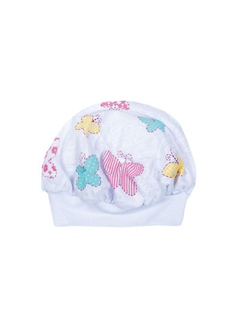 Дитячий берет для дівчинки *Метелики* - легкий та повітряний, як крила метелика. Бере для дівчинки *Метелики* на зручному двошаровому обідку, пошитий з ажурної тканини з ніжним орнаментом. На береті намальовані різнокольорові метелики – жовті, рожеві, білі та ментолові в квіточку, кружальце і смужку. Яскравий барвистий бере прикрасить гардероб юної модниці. Бере для дівчинки *Метелики*, підійде дівчаткам, віком від 1 до 2-х років.