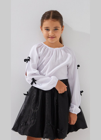 Блуза для дівчинки відмінно підійде як для святкових заходів у школі, так і для повсякденного носіння. Блуза добре тягнеться та відмінно сідає по фігурі дитини. Цікаве дизайнерське рішення обовязково приверне увагу юних модниць саме з цією моделлю.
