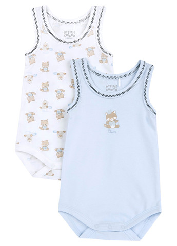 Комплект із двох боді Chicco "Ashton". Особливості: матеріал – екологічно чиста бавовна; антибактеріальна обробка – Zycrobial; декороване принтом; без рукавів; внизу кнопки для легкого перевдягання та зміни підгузника; сертифіковано OEKO-TEX®.