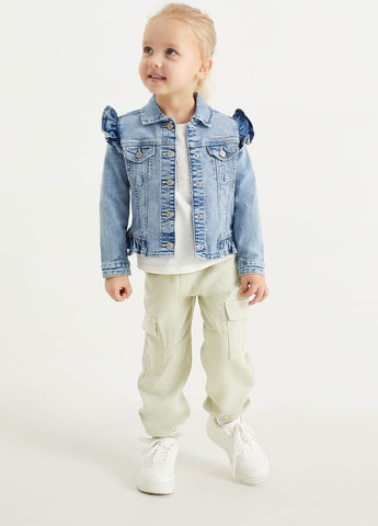 Застібка - змійка і гудзик. Є 2 бокові кишені для рук, 2 накладні кишені-карго, знизу манжет. В комплекті пояс.