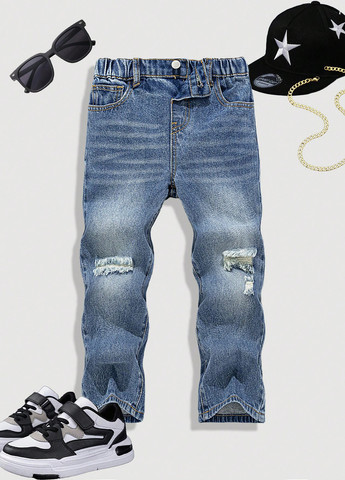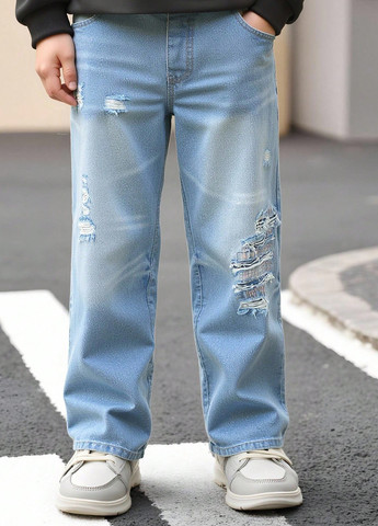 Щоденні рвані джинси для підлітків. Ці джинси вільного крою. Виготовлені зі світлого деніму із потертостями. Дизайн доповнений рваними деталями. Застібка на блискавку. Підходять для повсякденного носіння. Рекомендації щодо догляду: машинне прання або професійна хімчистка.