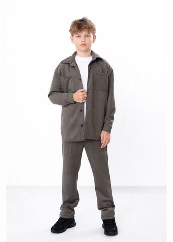 Полотно: Замш діагональ Склад полотна: 67% поліестер, 30% віскоза, 3% еластан Зріст: 140-170 Стильний костюм для хлопчика (підлітковий) із високоякісного замшу складається з сорочки на ґудзиках з накладними кишенями та зручних штанів прямого крою. Він дарує комфорт протягом дня та виглядає ефектно. Ідеально підходить для прогулянок, школи та зустрічей з друзями. Доступний в кольорах: чорний, темний асфальт і сірий хакі. Костюм можна носити разом або комбінувати окремо для створення стильних образів.