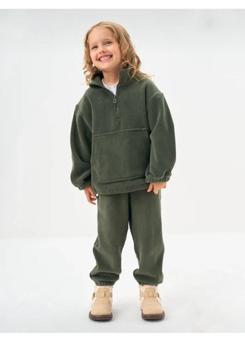 Стильний утеплений дитячий костюм кольору хакі – це чудовий вибір для прохолодної погоди, який поєднує в собі комфорт, практичність та сучасний стиль. Завдяки своєму дизайну, костюм швидко стає улюбленим як для малюків, так і для їхніх батьків. Він складається з кофти з капюшоном і просторою кишенею, а також штанів з зручними кишенями, що додає додаткову функціональність для щоденного використання. Утеплена тканина костюма забезпечує надійне збереження тепла, не обмежуючи свободу рухів дитини. Капюшон захищає від вітру, а місткі кишені ідеальні для дрібниць або для зігрівання ручок під час прогулянок. Штани та кофта мають зручний крій, що дозволяє дитині рухатися вільно та комфортно протягом усього дня. Завдяки універсальному кольору хакі, костюм легко поєднується з іншими елементами гардеробу, надаючи образу стильного та сучасного вигляду. Це ідеальний варіант для активних прогулянок, ігор на свіжому повітрі або просто для затишних днів вдома.