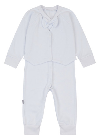Усім цим якостям відповідає нова модель комплекту для хрещення. Він складається із комбінезона білого кольору, виготовлено із 100% бавовни. Кнопки-застібки – на прямому зрізі та проходять по центру комбінезона та із внутрішніх боків обох ніжок, чим спрощують процес переодягання малюка. Ніжки комбінезона – відкриті, на манжетах. Додатковою оригінальною прикрасою є жилетка на кнопочці спереду. Жилетка у комплекті для дівчинки має пишний низ із складками, додатково прикрашена бантиком спереду та гіпюром на грудях.