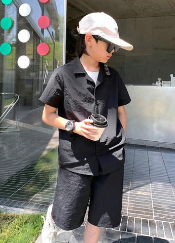 Повсякденний набір SHEIN Tween для хлопчиків. Цей комплект містить сорочку з короткими рукавами та шорти. Сорочка застібається на ґудзики спереду. Шорти у повсякденному стилі. Відкладний комір та короткі рукави. Вільний крій. Можна прати у пральній машині або чистити у хімчистці.