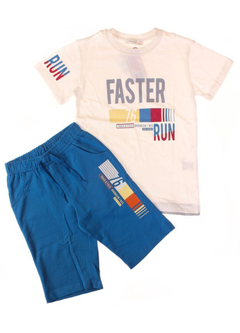 Дитячий спортивний комплект "FASTER RUN" (футболка + шорти) Опис: Стильний двоколірний комплект для активних дітей. Складається з білої футболки з надписом FASTER RUN та синіх шорт з яскравим принтом. Дизайн натхненний легкою атлетикою та вуличною модою Брукліна, США. Ідеально підходить для прогулянок, спорту або літнього відпочинку. Деталі: Кольори: білий, синій, жовтий, червоний Надписи: FASTER, RUN, TRACK & FIELD / BROOKLYN / NYC Еластичний пояс із зав’язками на шортах Легка та дихаюча тканина Значення елементів дизайну: Синій – активність, стабільність Червоний – енергія, швидкість Жовтий – позитив, сонячність ⚪ Білий фон – чистота, акцент на яскраві елементи ✴️ Графічні смуги – асоціація з біговими доріжками та динамікою