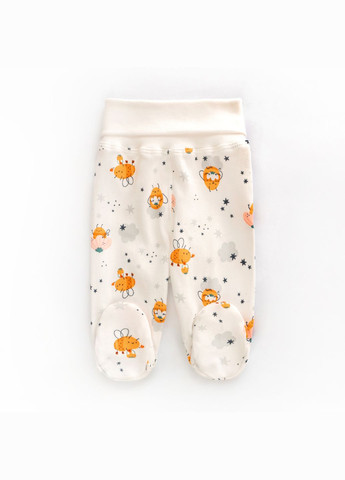 Повзунки для немовлят молочного кольору із бджілками. Зручна резинка на поясі не здавлює животик і забезпечує легке перевдягання, а вільний крій дозволяє дитині нормально рухатися. Ці милі повзунки для новонароджених виконані з натурального та м'якого інтерлоку — ідеального матеріалу для чутливої дитячої шкіри. Забарвлення підійде і для дівчаток, і для хлопчиків. Склад: 100% бавовна. Розмір 56 - довжина повна 33 см, довжина з підкоченим поясом 29 см, півобхват 19 см. Розмір 62 - довжина повна 36 см, довжина з підкоченим поясом 31 см, півобхват 20 см. Артикул: 908124