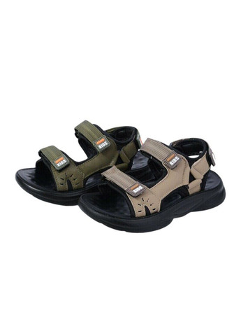 Дитячі сандалі для хлопчика бежевий з чорний спортивний план на липучки.