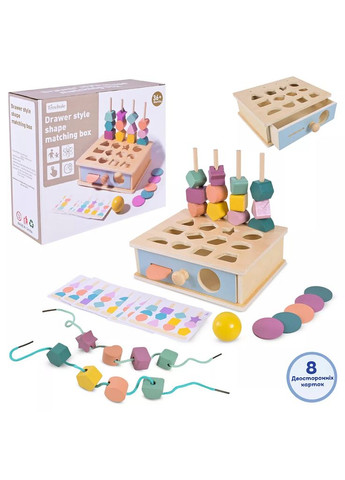 Супер гра 4в1 — розвиває логіку, моторику та фантазію! Ця універсальна розвиваюча іграшка поєднує одразу чотири ігри: пірамідку, сортер, логічні задачі з картками та шнурівку. Ідеально підходить для раннього розвитку, навчання форм, кольорів та тренування дрібної моторики. Виготовлена з натурального дерева, покритого безпечними фарбами. Міцна, приємна на дотик, витримає активні ігри та надовго залишиться улюбленою забавкою дитини. Переваги: 4 ігри в одній іграшці – пірамідка, сортер, шнурівка та логічні завдання з картками. Максимум користі в одній іграшці. Розвиток ключових навичок для дітей – тренує логіку, пам’ять, увагу, координацію та моторику. Навчання у грі – вивчення кольорів, форм, тренування координації та рахунку. Натуральне дерев’яне виконання — екологічний матеріал і безпечні нетоксичні фарби. Довговічність – витримує активні дитячі ігри. Компактний розмір і зручне зберігання — підходить для дому, подорожей та занять у дитячому садку. Підходить для Монтессорі методики – відповідає принципам самостійного та інтерактивного навчання. Комплектація: Дерев’яна основа 25 геометричних фігур 8 двосторонніх карток із логічними завданнями = 16 завдань 2 шнурівки для нанизування Коробка Чи підходить як подарунок? Так! Сортер 4 в 1 — це яскравий, корисний та універсальний подарунок для дітей від 3 років. Підійде як на День народження, так і для свят, для домашнього навчання чи занять у групах розвитку. Як гратися: Сортування за формою та кольором – дитина підбирає фігури, вчиться розрізняти кольори та геометричні форми. Будування пірамідки – нанизування фігур на стрижні у правильній або довільній послідовності для розвитку моторики та уяви. Логічні задачі з картками – малюк обирає картку-завдання та складає фігури згідно із зразком, тренуючи пам’ять та логіку. Шнурівка – нанизування елементів на шнурок для розвитку координації, терпіння та уваги. Вільна гра – створення власних фігур, візерунків і об’єктів, що стимулює фантазію та творчість. Розміри: Коробка – 22 х 17 х 5.5 см Дерев’яна основа – 21.5 х 16 см Найменша деталь – діаметр кулі 2.5 см Найбільша деталь – 3 х 3.5 см Довжина шнурівки – 65 см
