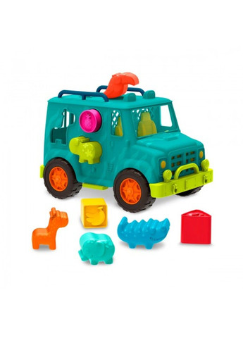 ВАНТАЖІВКА САФАРІ виїжджає, щоб познайомити малюка з кольорами, формами і тваринами! У вантажівки відкривається багажник, в якому зручно зберігати фігурки і форми. Вантажівку можна котити по підлозі. Фігурки тварин з різними формами в комплекті - кругла, квадратна, трикутна -неодмінно сподобаються маленьким пальчикам. Ігровий набір-сортер - ГРУЗОВИК САФАРІ (колір море) допоможе в розвитку: дрібної моторики, сенсорики, логіки. Розмір іграшки: 30.5 x 17 x 20 cm. Розвиваючі іграшки Battat - Будь креативним. Будь спритним. Будь собою! Рекомендовано для дітей віком від 1 року.